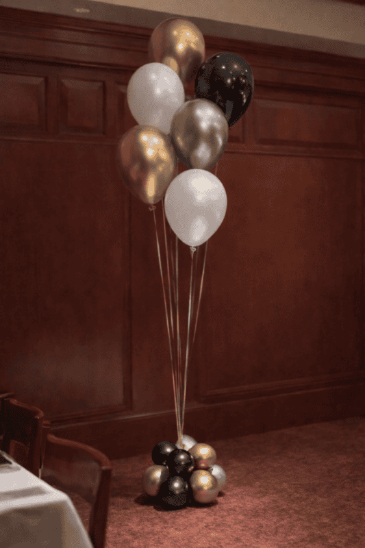 Each centerpiece is professionally assembled using premium balloons and a polished weighted base, making them ideal for birthdays, corporate events, and upscale celebrations throughout Raleigh, Durham, Cary, and the surrounding Triangle area.